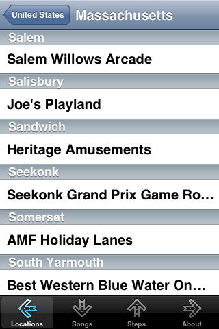 With DDR Compendium, you have instant-access to every single DDR Arcade Machine known to exist in the world. You can choose any continent, country, and state, and you will be presented with all of the DDR Machines that have been found in that area. You can obtain each location's address, what specific version of DDR they have, and their phone number (if you want to call ahead). This is invaluable for DDR players in unfamiliar territory, or to check your local area for new hotspots.