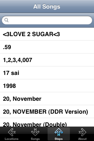 DDR Compendium also contains songlists for every version of DDR ever released (both home and arcade). Have you ever forgotten if a certain mix has a specific song? Now you can check, wherever you are!